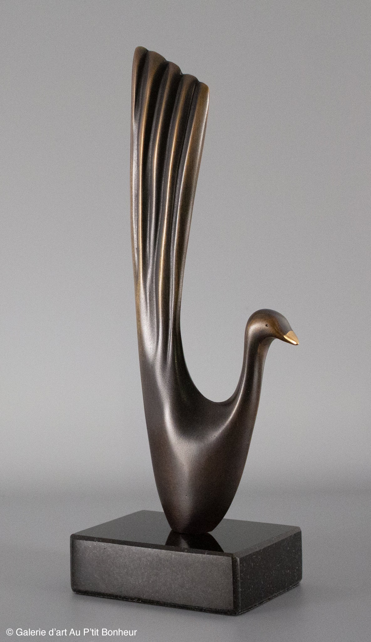 Au cours des deux dernières décennies de sa vie, ce sont les oiseaux en bronze patiné qui ont animé l’esprit inventif du sculpteur. À partir de 1993, l’artiste a réalisé plus d’un millier de dessins dans un petit cahier duquel il façonne 240 modèles tirés à 8 exemplaires seulement. Les pièces, qui dépassent rarement 30 centimètres, inspirent la joie et la gaieté tout en offrant un modelé savant qui fait honneur à la maîtrise du sculpteur.  Aussi, chaque oiseau est affublé d’un qualificatif comme nom, ce qui bonifie la sculpture en la rendant très vivante, presque animée. Ainsi, vous aurez plaisir à faire la connaissance du méditatif, du bedonnant, du somnolent, du jongleur ou du bollé; des personnages ailés très expressifs, des oiseaux de… bonheur qui décrochent à tous coups le sourire des observateurs.